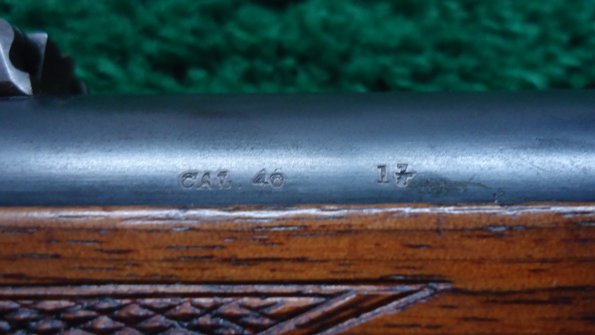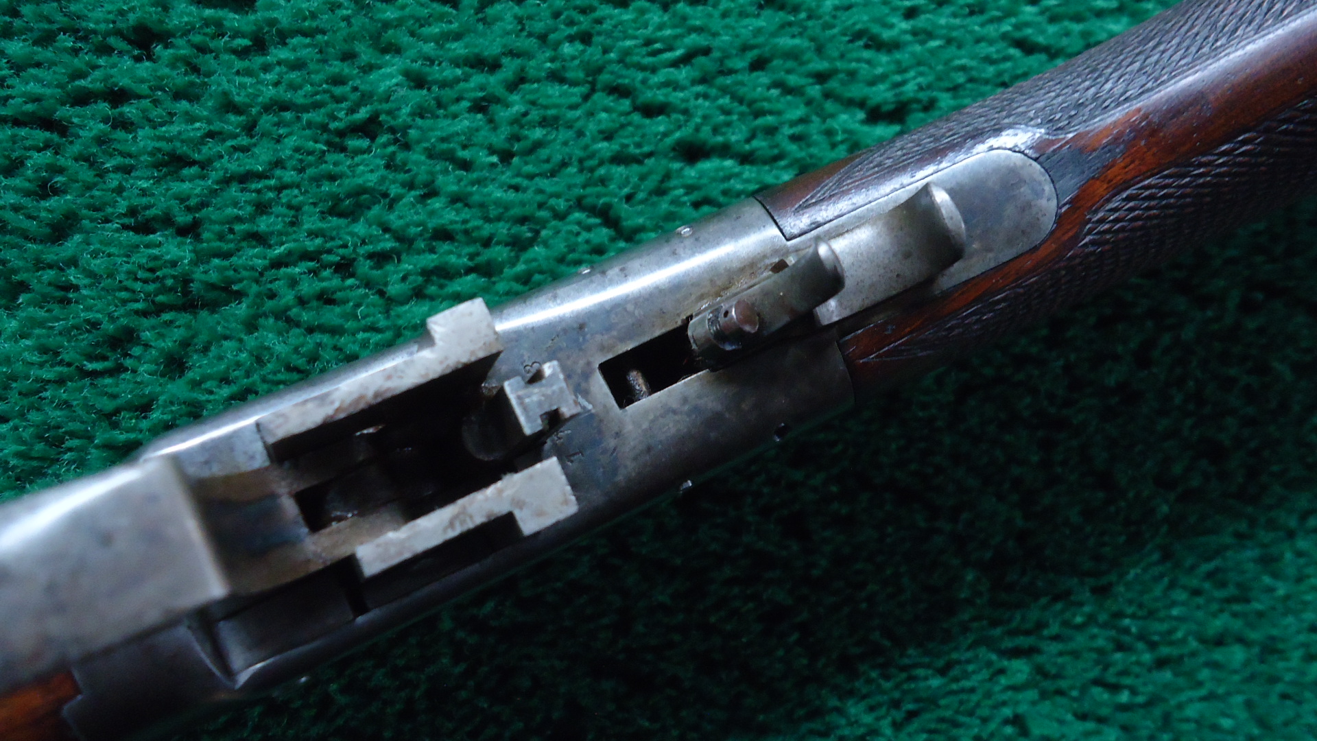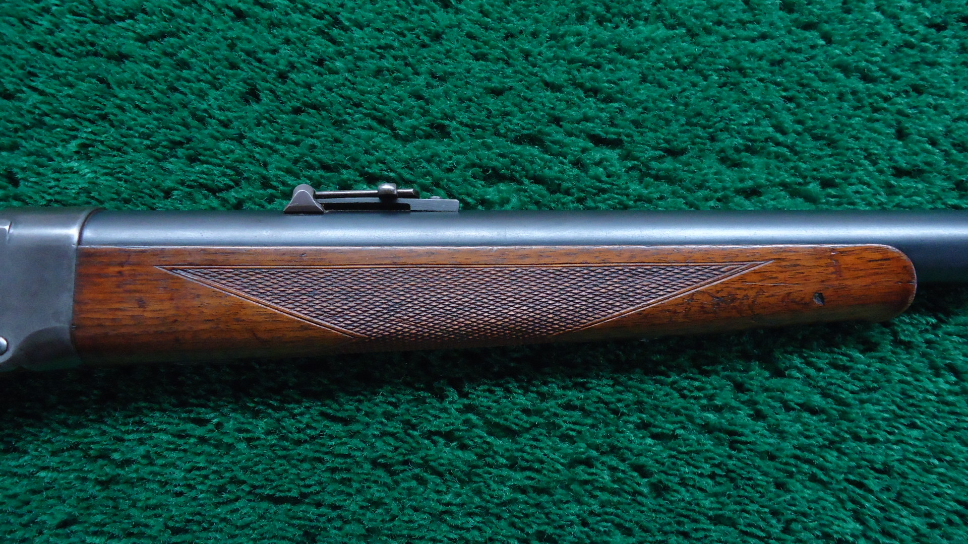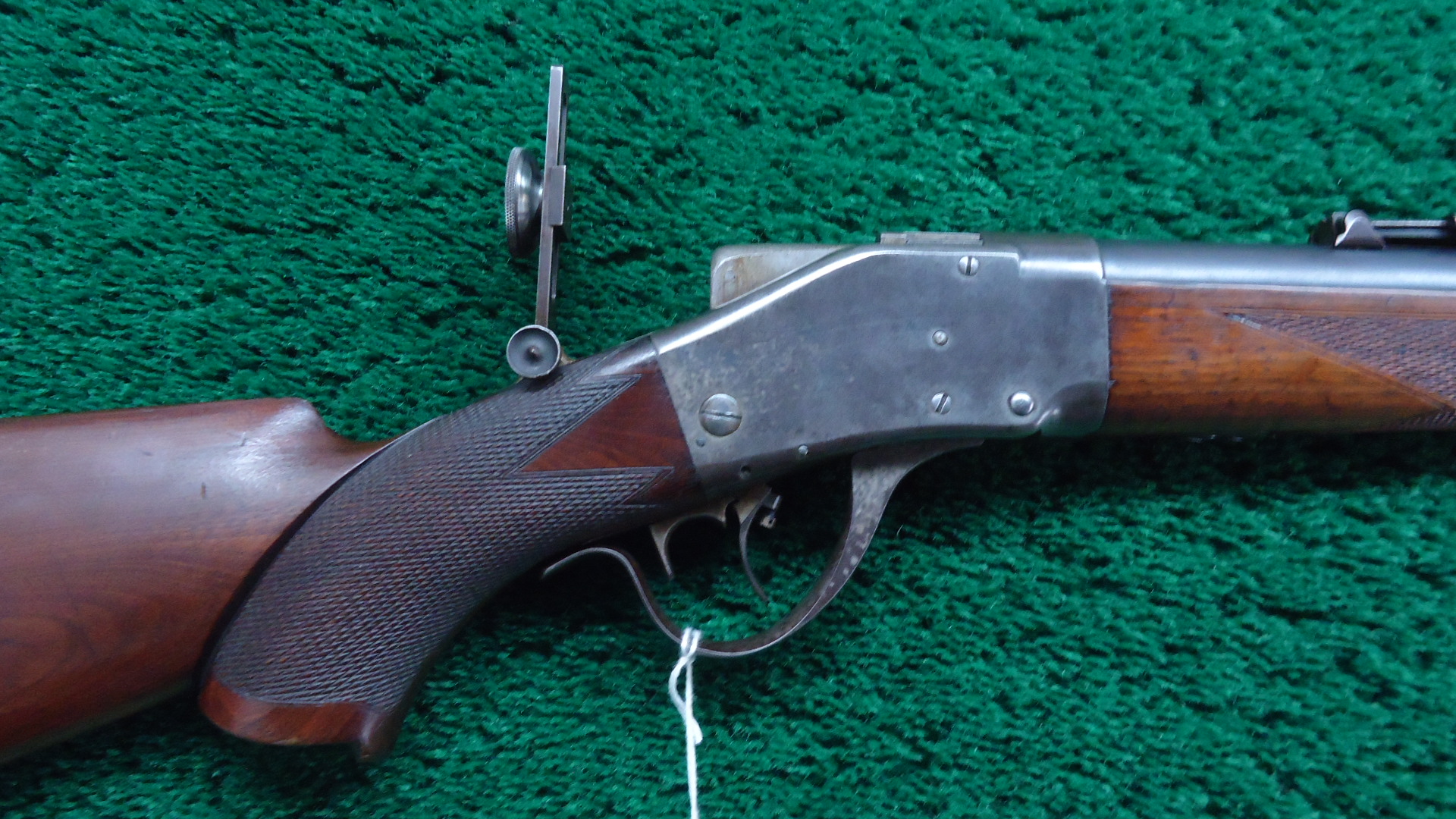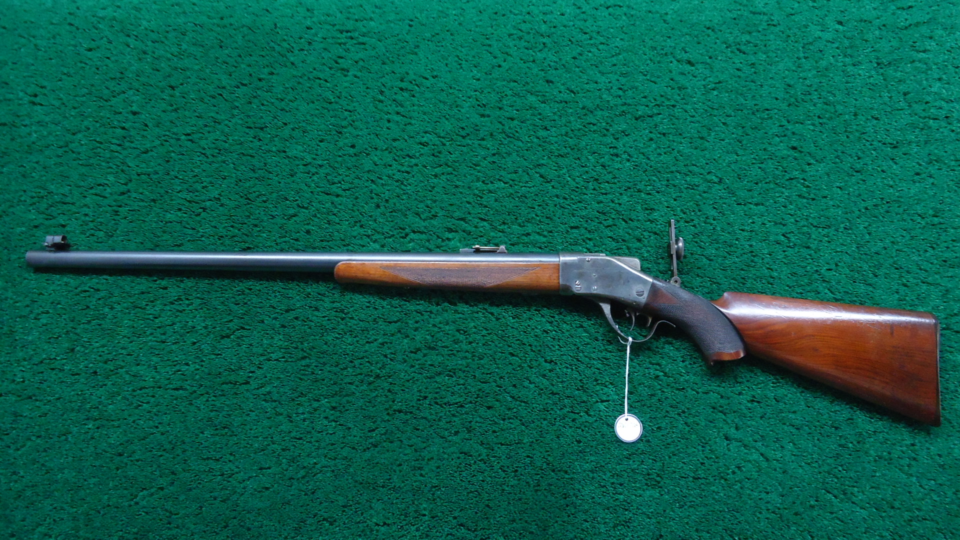 MR1726 RARE SHARPS BORSCHARDT MODEL 1878 SHORT RANGE RIFLE; 26 inch round barrel is marked “Old Reliable” followed by “SHARPS RIFLE CO. BRIDGEPORT, CONN.” ahead of the rear sight and “CAL. 40 1-7/8” on the left side ahead of the action. Original wind gauge globe front sight, Lawrence patent rear barrel sight and a short range graduated peep sight integrally set in the tang. The left side of the color case hardened action is marked with the standard three-line Sharps address and Borchardt patent. Built with a set trigger, now seems to have something missing but still functions as a plain trigger. Checkered Schnabel tip forearm with matching pistol grip butt stock fitted with a checkered hard rubber buttplate with the Sharps Rifle Co. “SRCo” monogram at the center. Near excellent condition overall with the barrel showing 60% original blue starting to tone slightly brown. Bore is bright and shiny with strong rifling. Faint traces of the original case colors remain on the action with the balance a mottled brown grey patina. The wood is fine showing light wear with scattered handling marks. Comes with Factory letter showing it was manufactured in 1879. Frank Sellers book “Sharps Firearms” page 275 shows only 153 Model 1878 Short Range Rifles are estimated to have been manufactured.