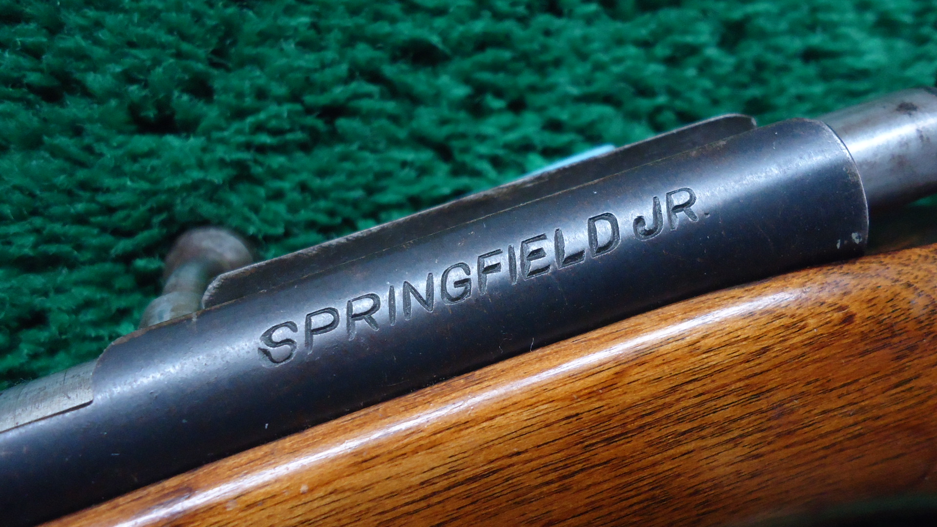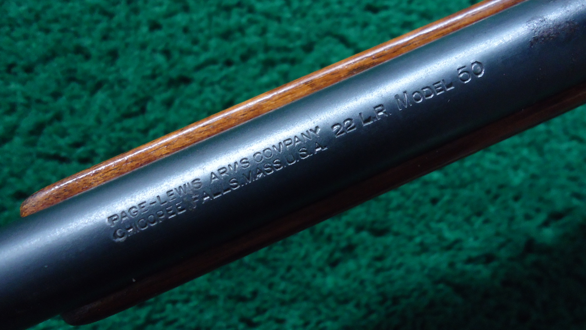 MR1745 PAGE-LEWIS ARMS MODEL 50 SPRINGFIELD JR 22 CALIBER RIFLE; Page-Lewis Arms started their business in 1921 and produced simply falling block rifles; Model A, Model B, and Model C. Then in 1923 they designed the bolt action Model D for junior shooters. Production on the Model D ran through 1928 when the company was acquired by Savage/Stevens who came out with basically the same Model D with a larger stock and a 24 inch barrel and called is Model 50 Springfield Jr.