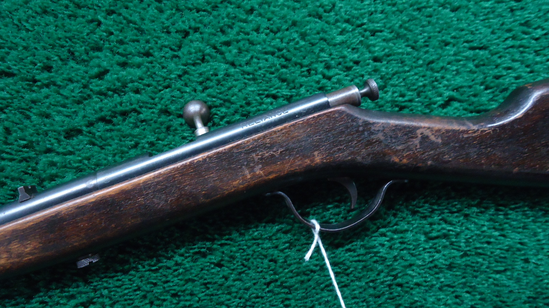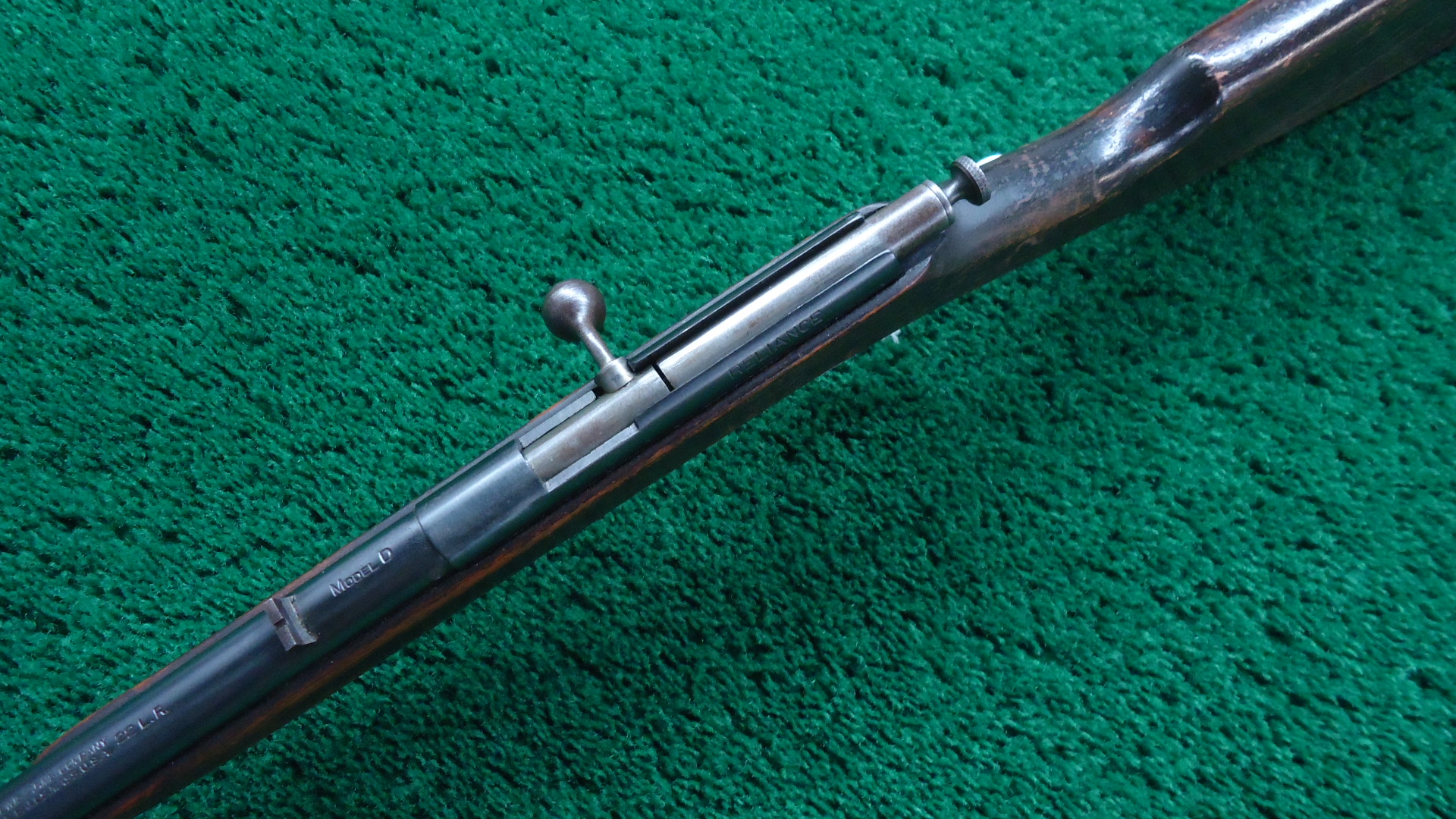 MR1746 PAGE LEWIS MODEL D RELIANCE BOYS RIFLE; The Page-Lewis Model D Reliance single-shot .22 caliber bolt-action rifle was manufactured from 1923 to1928. It was designed as an entry-level “boy’s rifle,” known for its simplicity, affordability, and safety features for young shooters. This rifle has a 20 inch barrel with a bright excellent bore. Overall metal retains a good amount of original thinning blue with light handling marks and high edge wear. The bolt is a dull gray and the knob has toned brown. The smooth hardwood straight grip stock is in good condition with scattered handling marks and flaking finish. The original sights are intact and the action appears to function well mechanically. The Model D was the last model produced by the Page-Lewis Company before it was acquired by Savage/Stevens in 1928.
