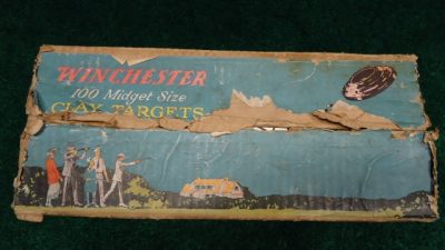 W1500 WINCHESTER MODEL 20 SINGLE BBL 410 GAUGE SHOT GUN; This gun is complete in the original black fiber board hinged-lid case. It is accompanied by the original miniature trap thrower, a 3-piece brass cleaning rod, and 6 boxes of Winchester Super X 410 shot gun shells (which are newer manufactured). Also included is the Winchester marked wooden box containing most of the clay targets which is almost always gone, several Winchester oil cans and gun grease, and a 2-piece box of Winchester marked wooden plinker targets. This Winchester Junior trap set is over all in excellent condition and very rare.