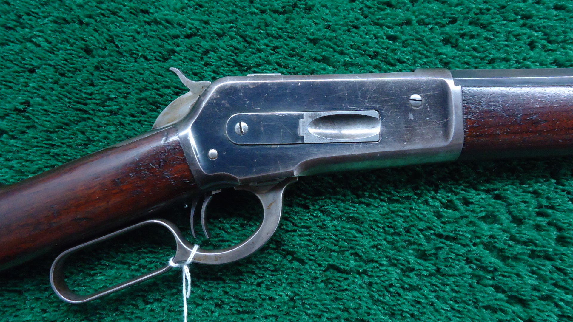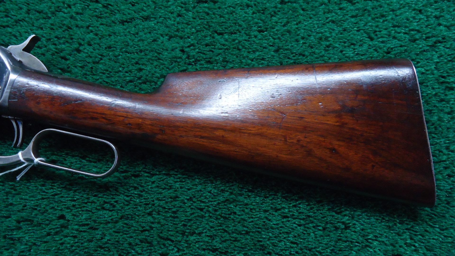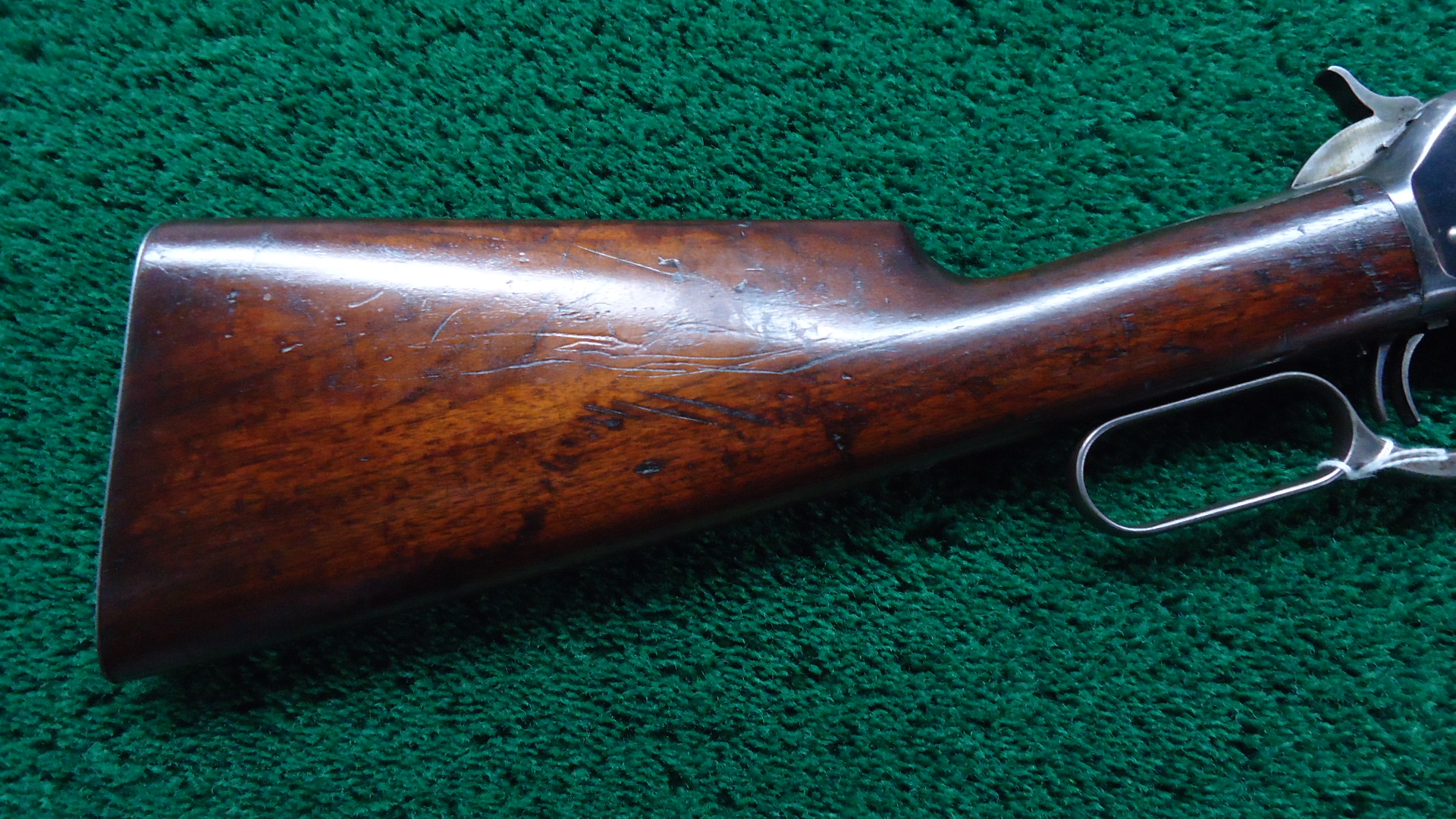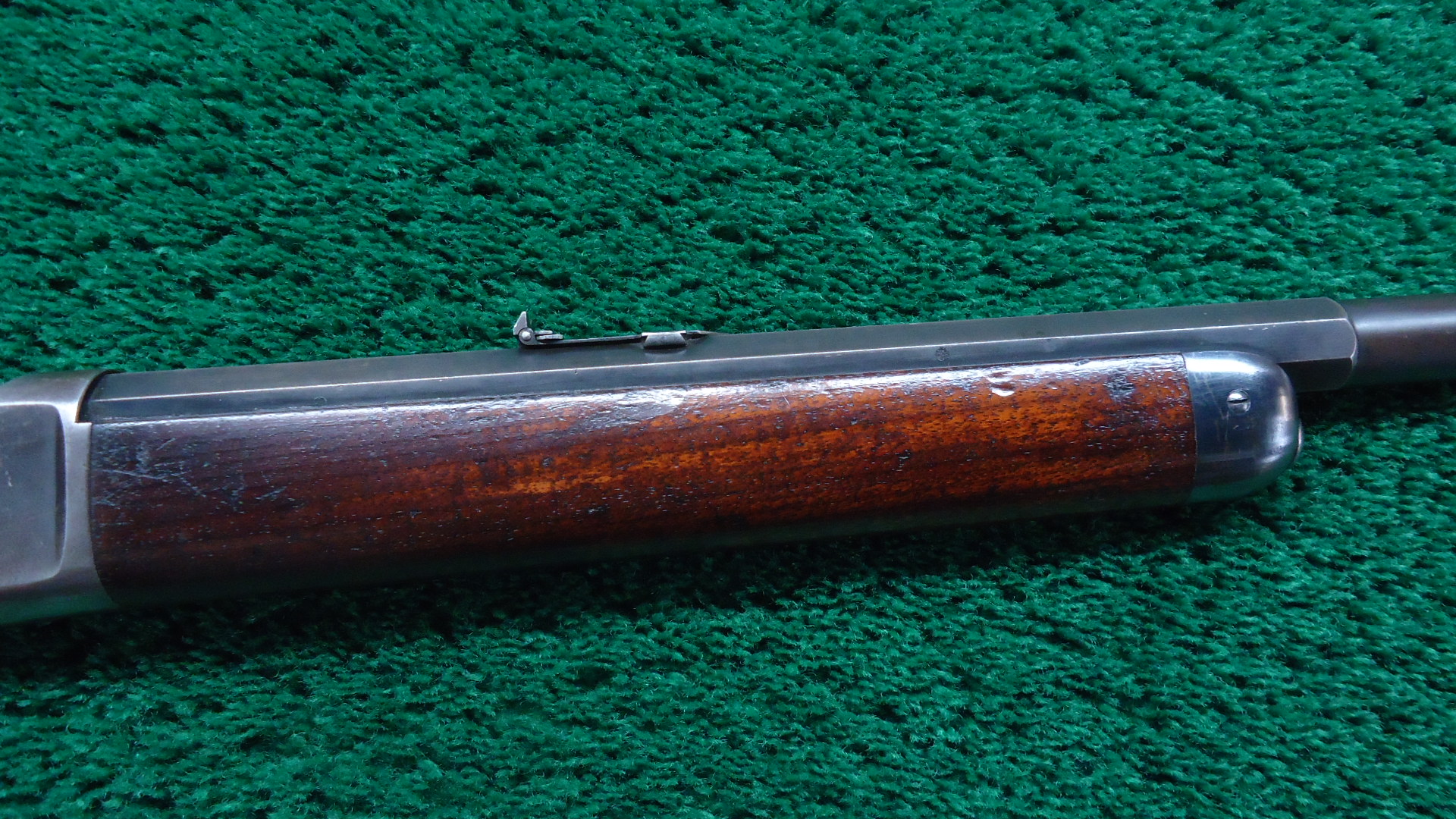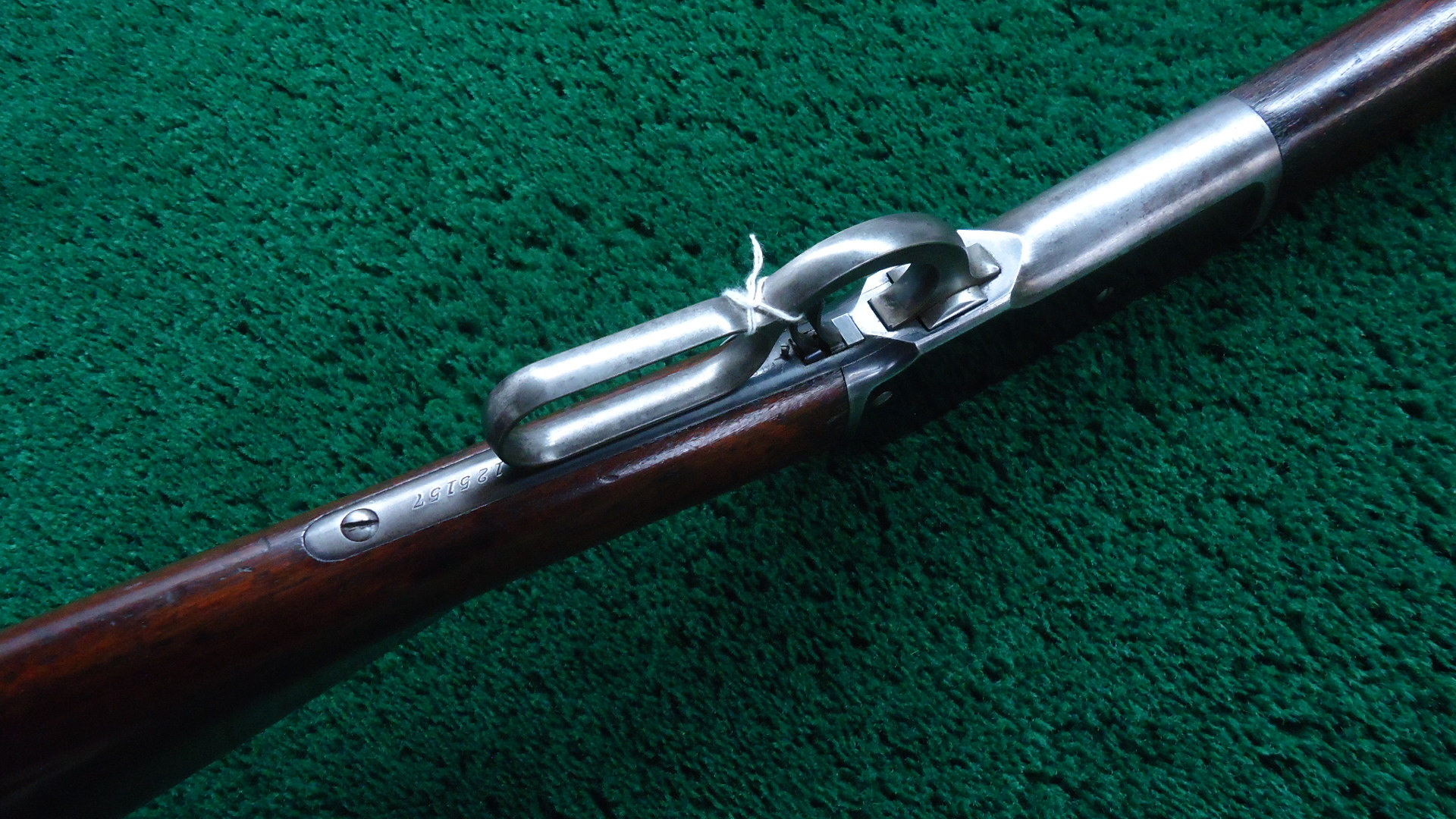 W4425 SPECIAL ORDER WINCHESTER MODEL 1886 RIFLE IN CALIBER 50 EXPRESS; Features include a 26 inch 1/2 octagon barrel marked “MADE FOR P.ORR & SONS. MADRAS.” and “50 EX”. 1/2 length tube magazine. No. 21 Sporting front sight with a nickel silver blade and a 3 Leaf Express rear. Double set trigger. Plain walnut forearm with matching straight grip butt stock fitted with a flat steel shotgun style buttplate. It is in fine condition overall with the barrel and receiver retaining about 40% original blue finish with the balance having thinned to a smooth brown or grey patina. Hammer and lever show strong traces of the original case colors and the loading gate faint traces of original nitre blue. The wood is also fine with minor dings and scratches. Mechanically excellent. Comes with Factory Letter showing it to be 1 of 7 Model 1886’s shipped to a high end retailer in India, P. Orr & Sons to be marketed to sportsmen looking to hunt dangerous game. The firm was established by Scotsman Peter Orr in 1846 in Madras, India, and it was primarily known as a retailer of luxury items, similar to the American firm Tiffany & Co.