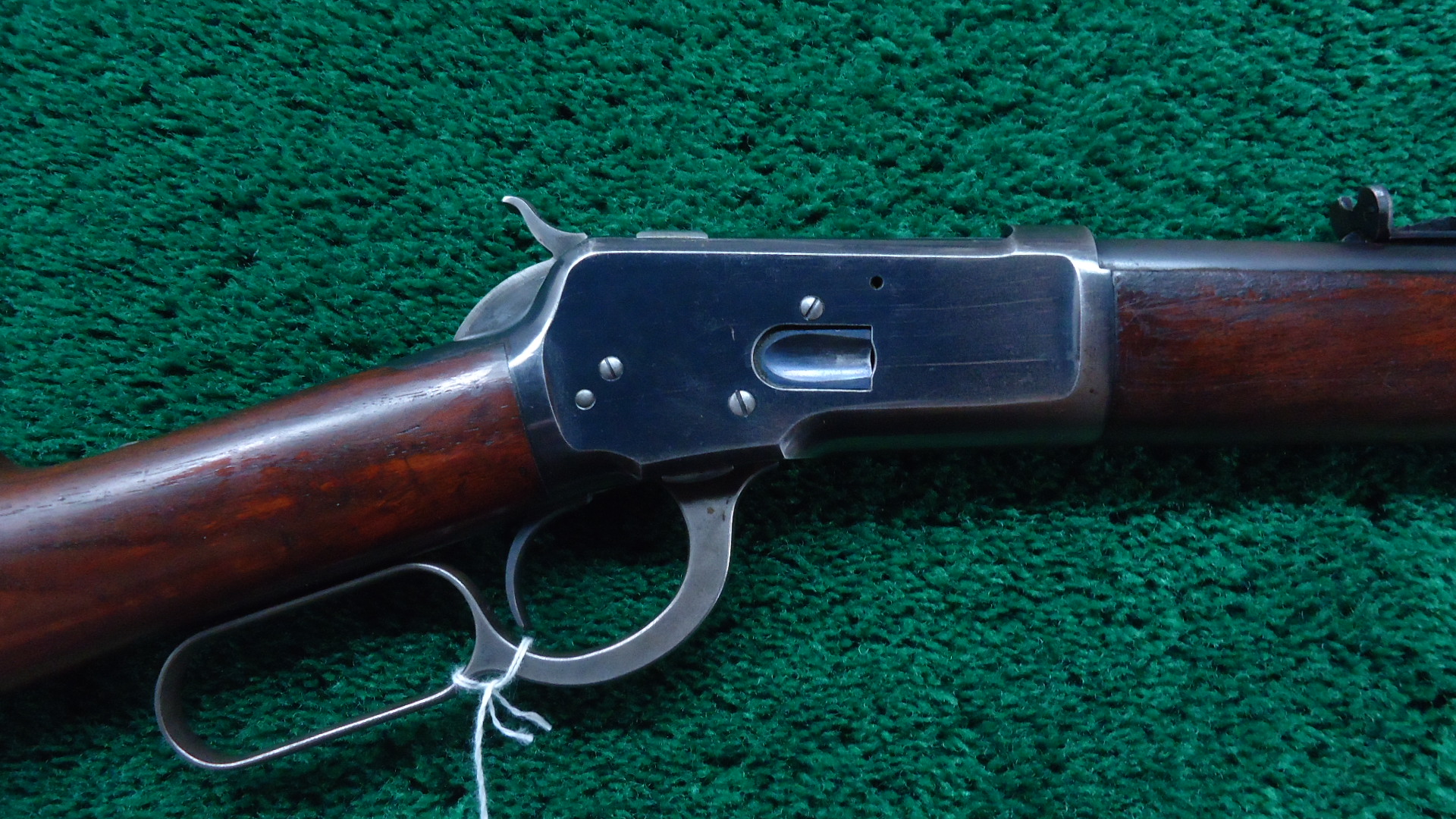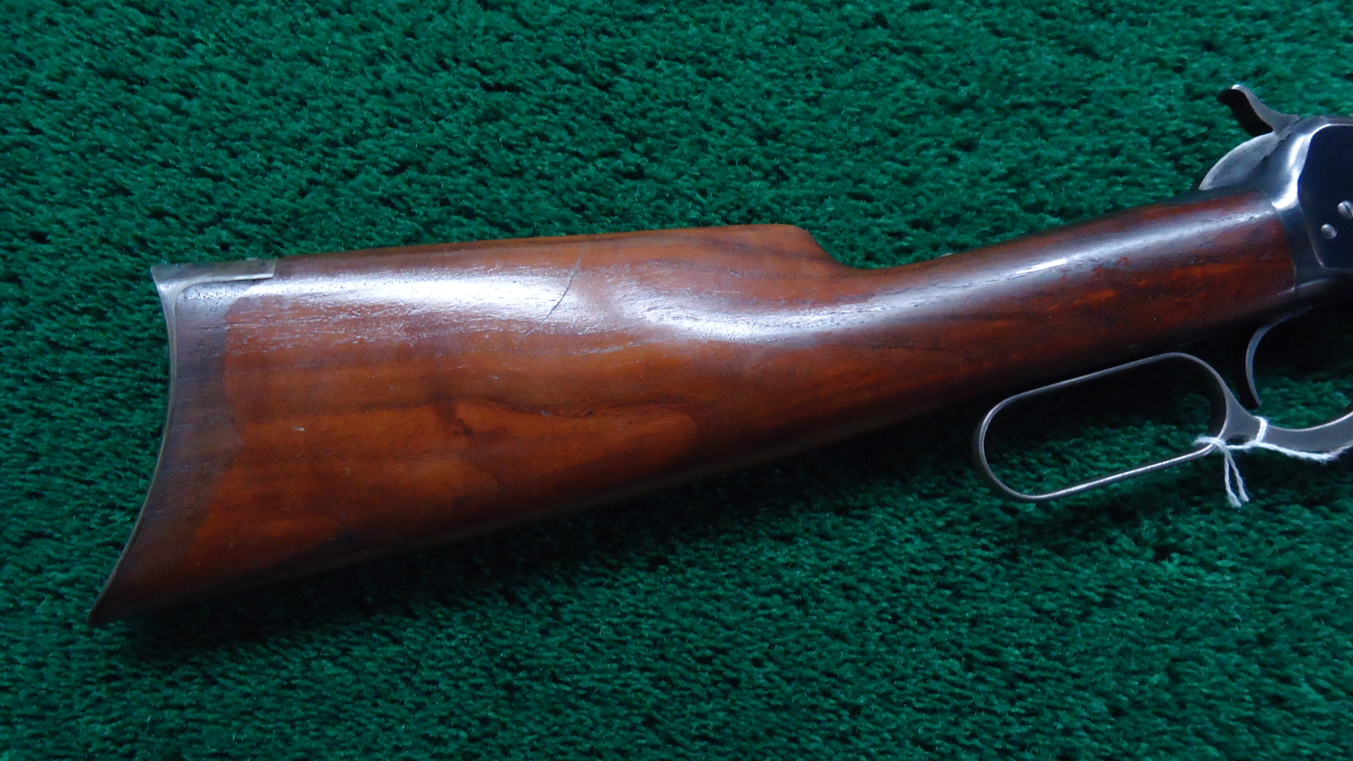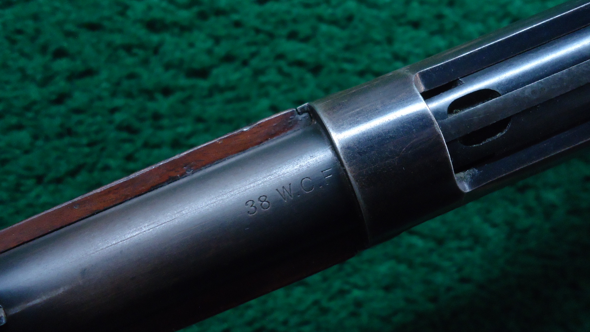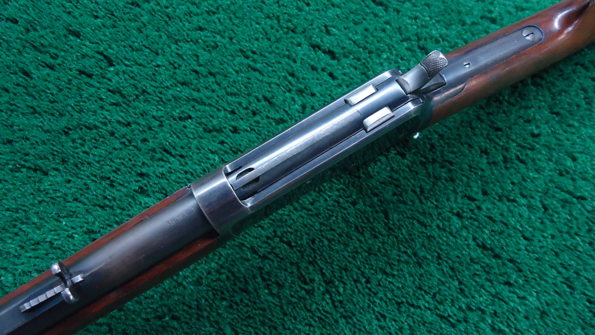 W4533 ANTIQUE WINCHESTER MODEL 1892 RIFLE IN 38 WCF CALIBER; 24 inch round barrel chambered in 38 WCF caliber with a bright shiny excellent bore. Sights include a German silver blade front and typical sporting rear. Barrel and full length magazine tube retain most all thinning blue. Receiver has strong original blue thinning at the carry point. Traces of case colors remain on the hammer and lever. Walnut stocks are overall good condition with several handling mars. Rifle style crescent buttplate still has some case colors. Nice crisp functioning action. Hard to find an Antique serial numbered Winchester with this much condition that was made in 1894. Complete with factory letter confirming the configuration and manufacture date.