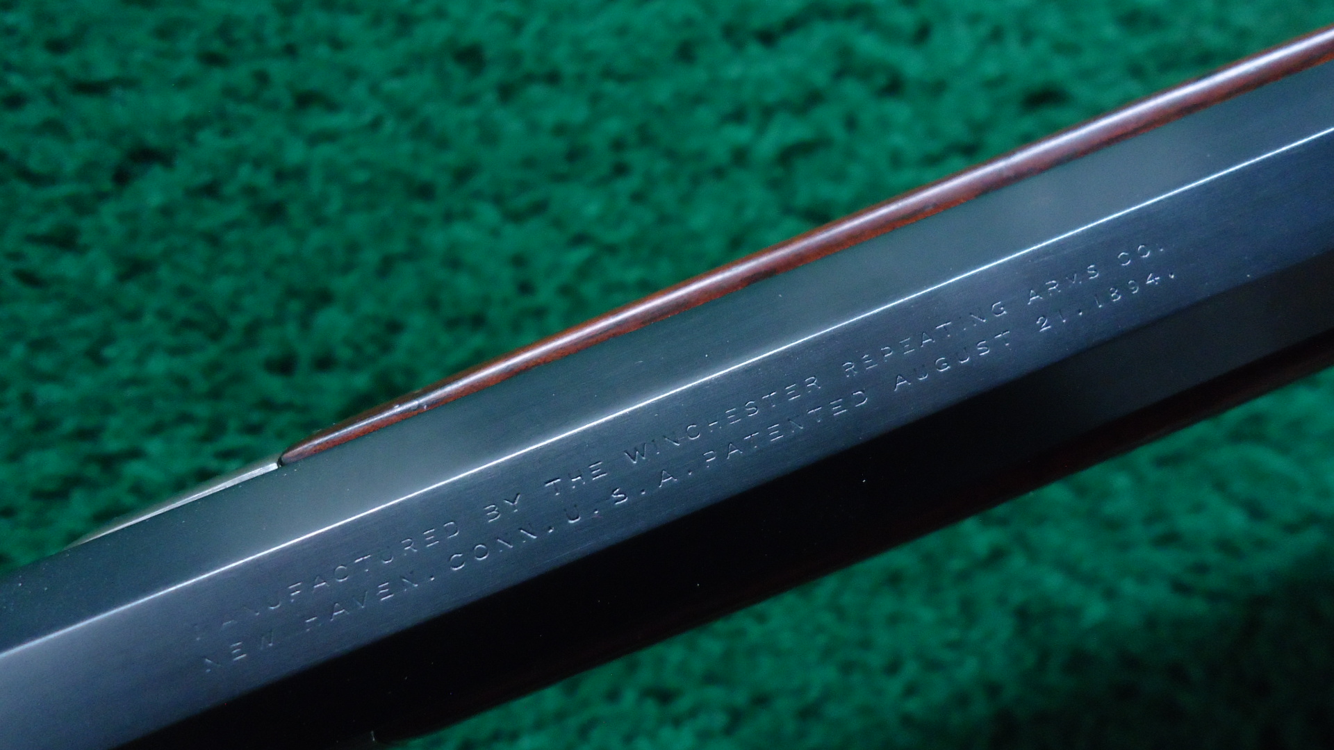 W4543 RESTORED WINCHESTER MODEL 1894 RIFLE IN 38-55; 26 inch half octagon barrel. Original sights include a No. 21 sporting front with nickel silver blade and a No. 22 sporting rear along with a Lyman No.1 combination tang sight. Full length tube magazine. Plain walnut forearm with matching straight grip buttstock fit with crescent rifle buttplate. Near excellent as restored. Barrel, mag tube and receiver retain 95% re-blued finish with the receiver showing some very fine residual pitting. Bore is dark, appears blued, with rough surfaces and worn rifling. The forearm cap, lever, hammer and buttplate retain 95% restored color case hardened finish. Refinished stocks are solid and full fitting showing light handling marks with the forearm having some scratches with finish loss mostly on the bottom.