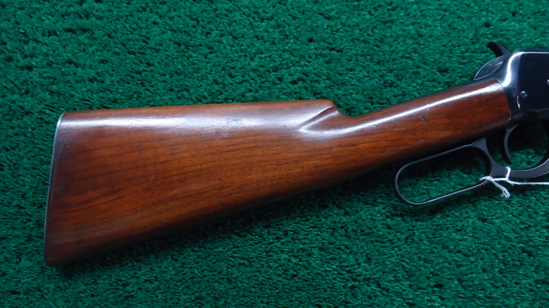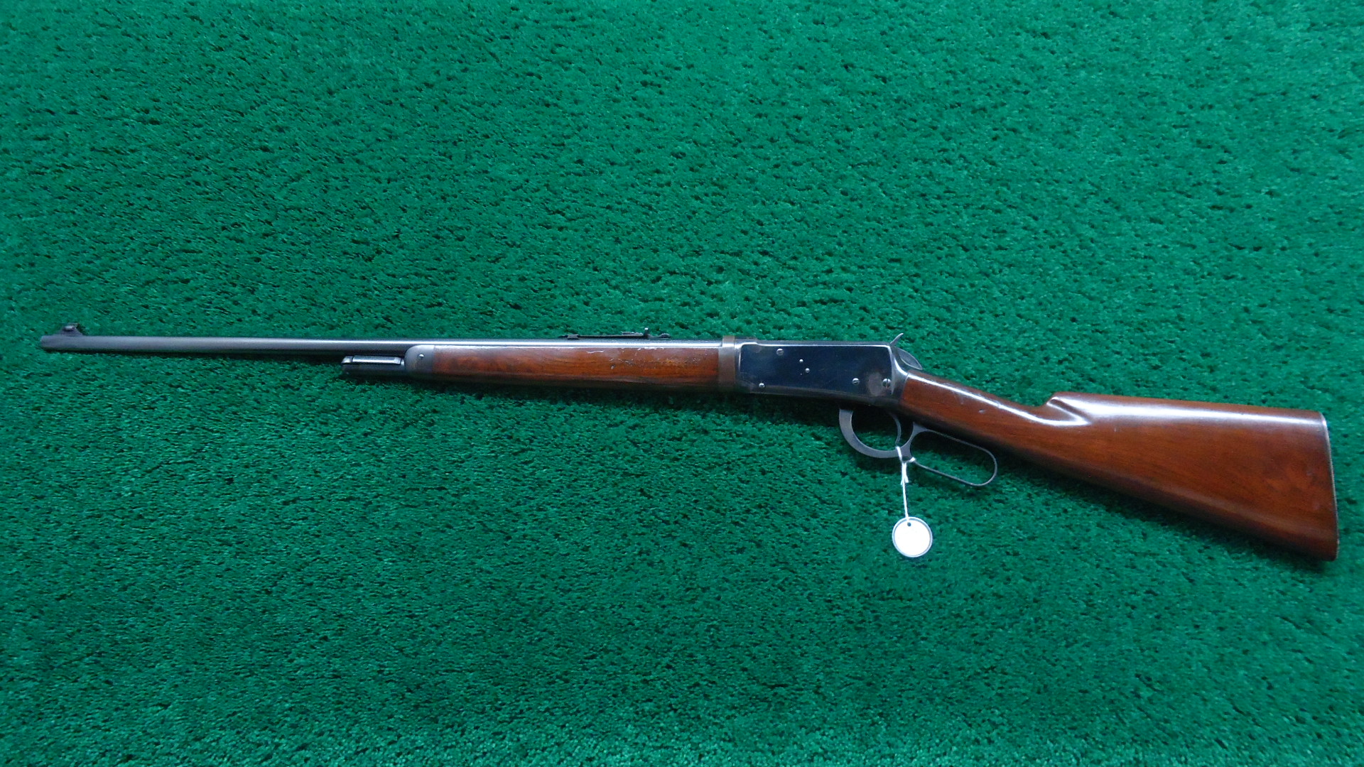 W4556 FIRST YEAR PRODUCTION WINCHESTER MODEL 55 TAKE DOWN LEVER ACTION RIFLE IN 30 WCF; 24 inch round barrel. Half length tube magazine. Lyman brass bead front sight with flat top sporting rear. Plain walnut forearm with matching straight grip buttstock fit with a ribbed steel shotgun style buttplate. Near excellent condition with metal surfaces showing most finish remaining having a couple areas on the receiver been touched up with cold blue and otherwise typical wear and handling marks. Stocks are solid and full fitting with a coat of finish added over light handling marks. 3 digit serial number manufactured the first year of production in 1924.