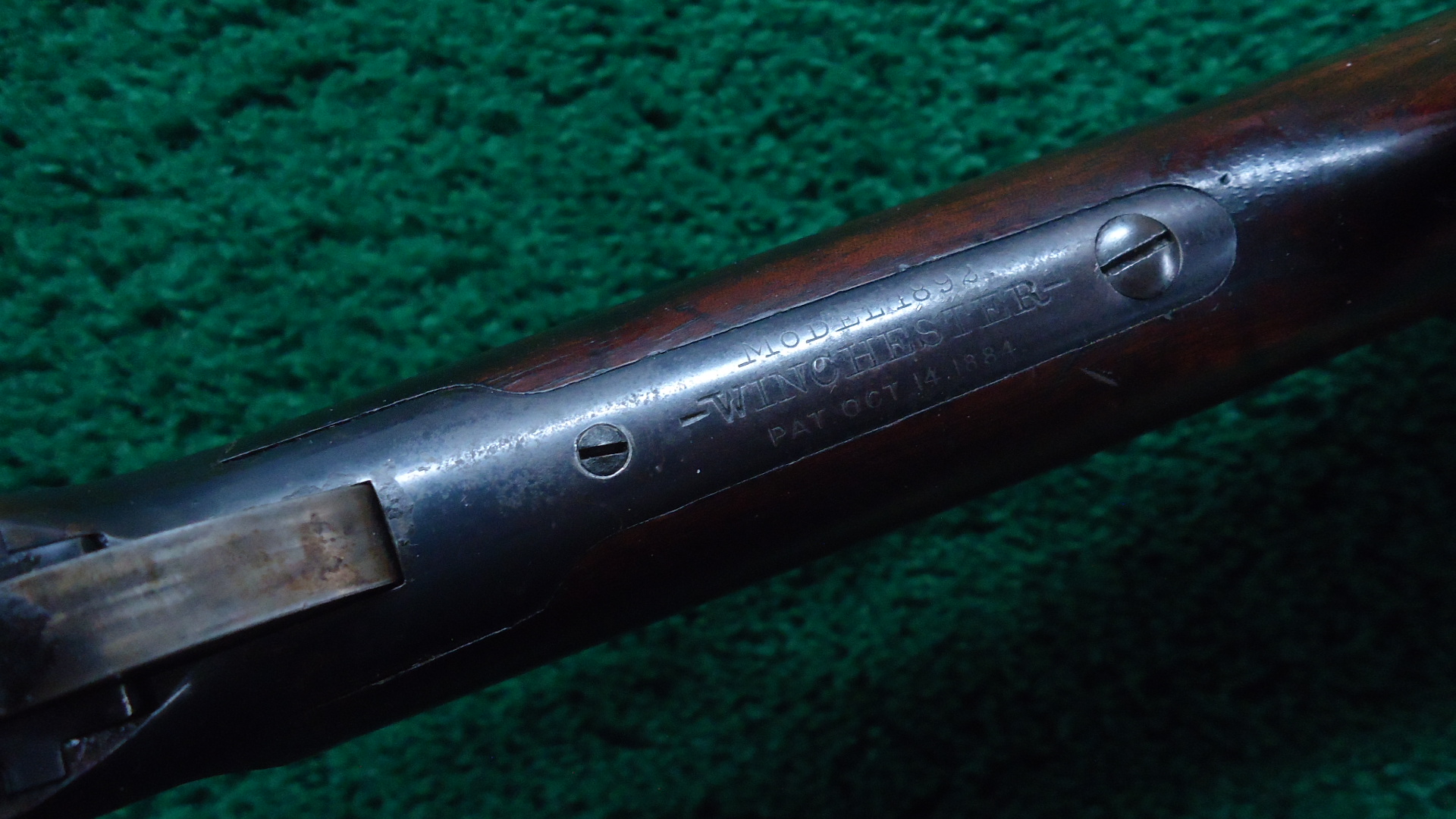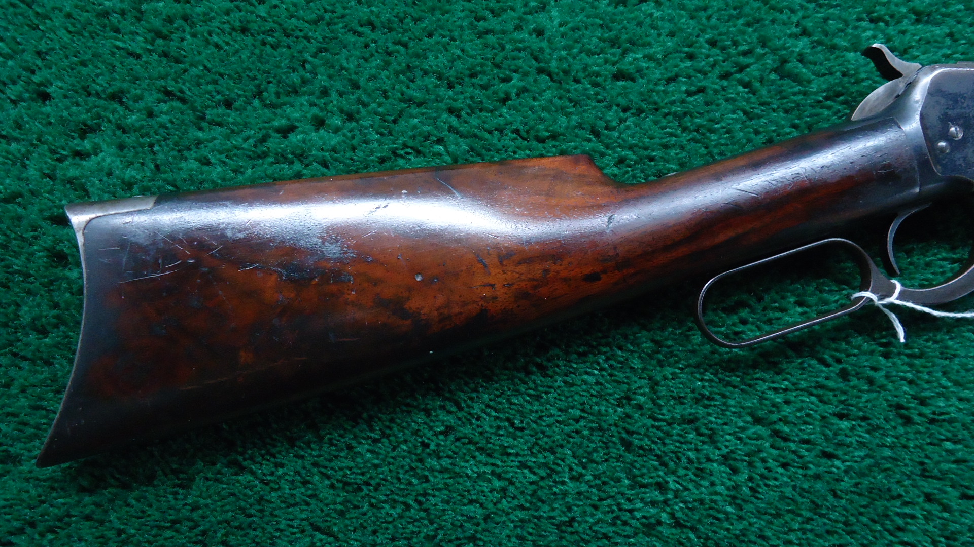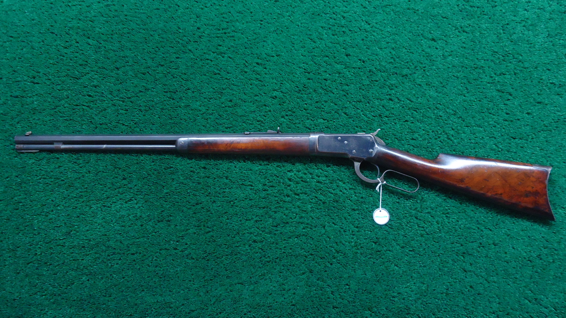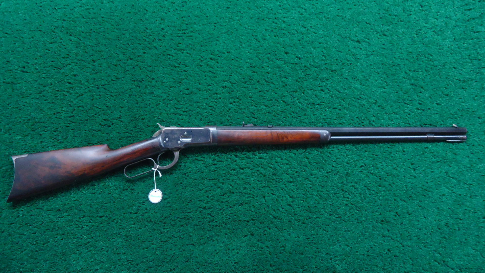 W4588 ANTIQUE WINCHESTER MODEL 1892 TD RIFLE IN 32 WCF; 24 inch octagon barrel chambered in 32 WCF caliber. Very good bore with shine and good rifling. Sights include a German silver blade front and semi-buckhorn sporting rear. Barrel and full length magazine tube retain about 95% blue with some some thinning and minor handling wear. Receiver has about 85% bright blue but shows some age freckling. Hammer and lever have traces of case colors. Bright blue on the loading gate. Forend cap retains most of its blue finish as well as the Takedown ring. Nice smooth functioning action. Walnut stock set is in good condition and fit well and are proud to the metal with some handling and usage mars. A little bit of figure showing as well. Rifle style buttplate. This Winchester rifle with Take-Down frame was made in 1894. Complete with a copy of a factory letter stating in the warehouse in November 1894 and shipped out in April 1895.