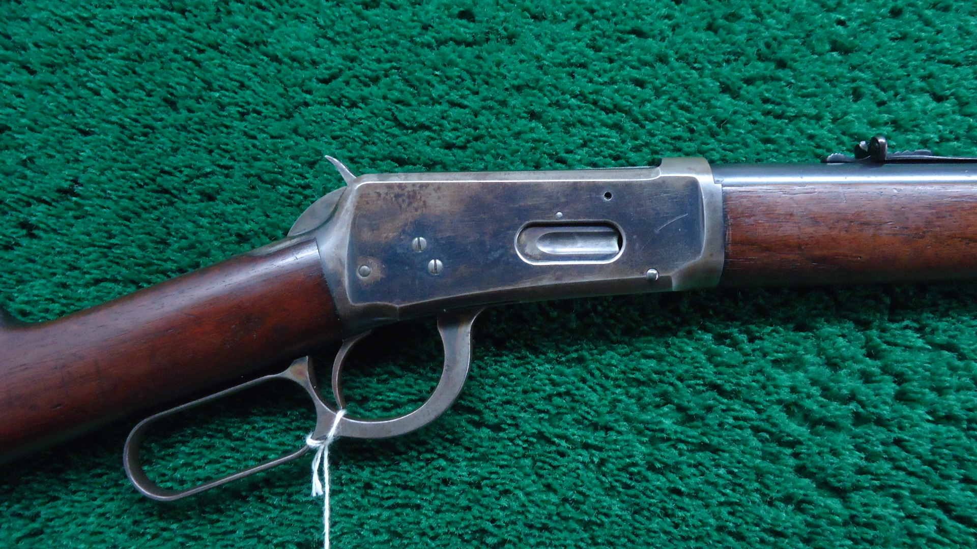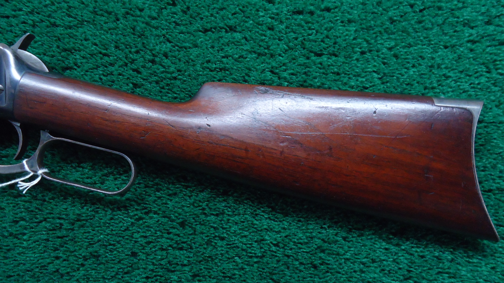 W4606 WINCHESTER MODEL 1894 RIFLE CHAMBERED FOR 32-40; 26 inch round barrel. Half length button magazine. Marbles Sheard front sight with a half buckhorn sporting rear. Plain walnut firearm with matching straight grip buttstock fit with a crescent rifle buttplate. Very good condition overall with the barrel and receiver retaining 55-65% of the factory finish with areas of thinning turning brown, as well as a few scattered freckles and other handling marks. The lever and hammer show a few bright flashes of case coloring with some patterning present on the buttplate. Very good bright and well defined bore with some very mild surface imperfections. Mechanics are sound with a crisp tight action. Stocks are solid and full fitting showing wear and handling marks. Manufactured in 1907.