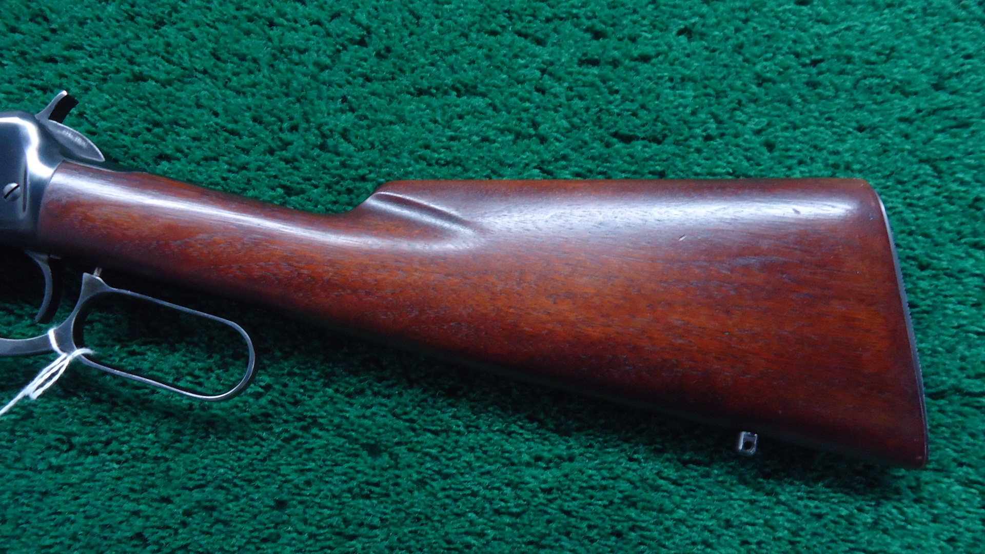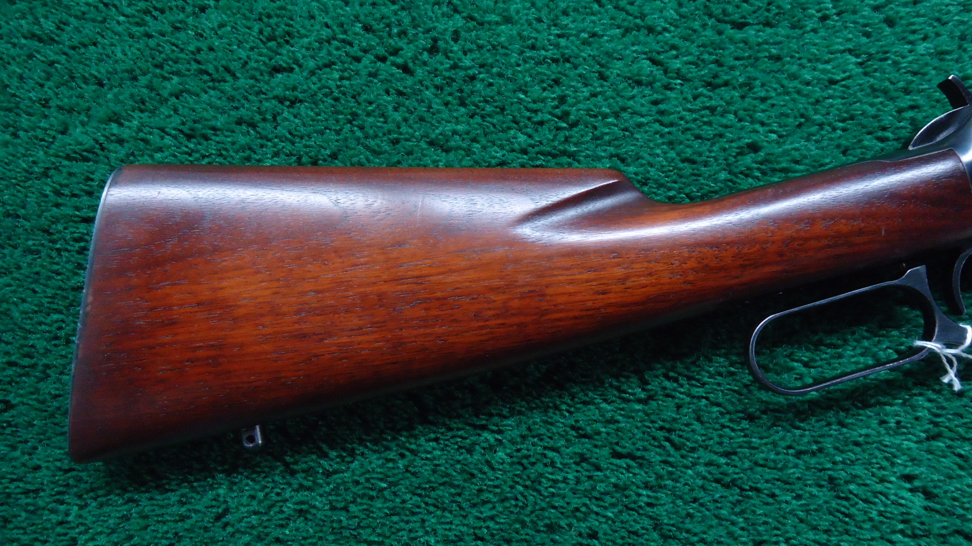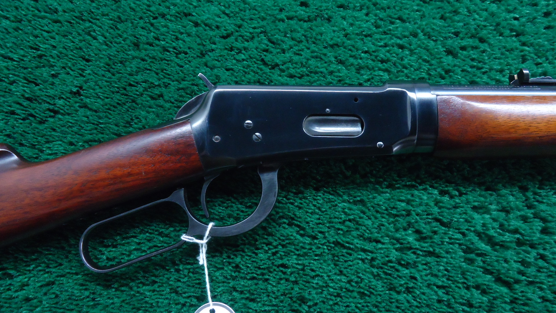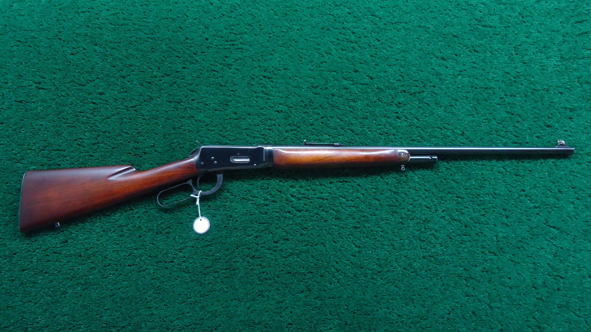 W4636 WINCHESTER MODEL 55 TAKE DOWN LEVER ACTION RIFLE IN 30 WCF; 24 inch round barrel. Modified blade front sight and a sporting rear. Half length tube magazine. The forearm is a semi-beavertail model 64 type plain walnut with matching straight grip buttstock fit with ribbed steel shotgun style butt plate. Features include a takedown receiver and eyes for detachable sling swivels. Excellent condition overall as restored with clean smooth metal surfaces showing about all deep dark re-blued finish with only slight wear on the edges of the muzzle. Bore is excellent, bright and shiny with strong rifling. Action is crisp and tight. The stocks are solid and full fitting with only very light handling marks. Manufactured in 1930.