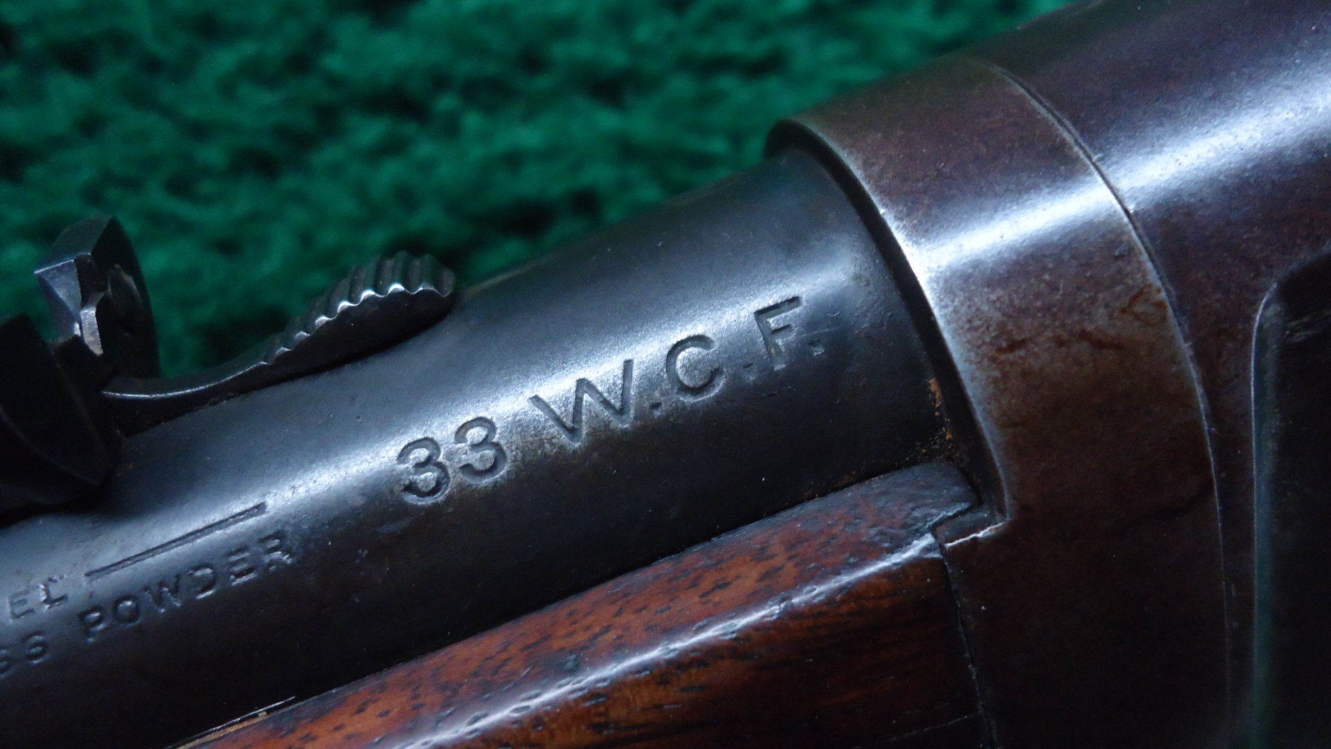 W4676 WINCHESTER MODEL 86 TAKEDOWN LIGHTWEIGHT RIFLE IN 33 WCF; 24 inch round nickel steel tapered barrel chambered in 33 WCF caliber with a bright shiny near excellent bore. Sights include a Marble/Sheard brass beaded blade front with flattop sporting rear. Barrel retains nearly all thinning blue. 3 shot half length tube magazine. Receiver is a plum/brown patina as is the Takedown ring and forend cap. Hammer and lever are brownish too. Traces of fire blue on the loading gate. Walnut stocks are in generally good condition with an added coat of finish and a repaired crack on the right side of the forearm. Hard rubber shotgun buttplate. Nice crisp functioning action. This Winchester rifle was made in 1919.